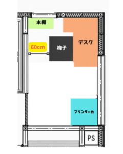 机と椅子と本棚を置くと 部屋はほぼ完成します。