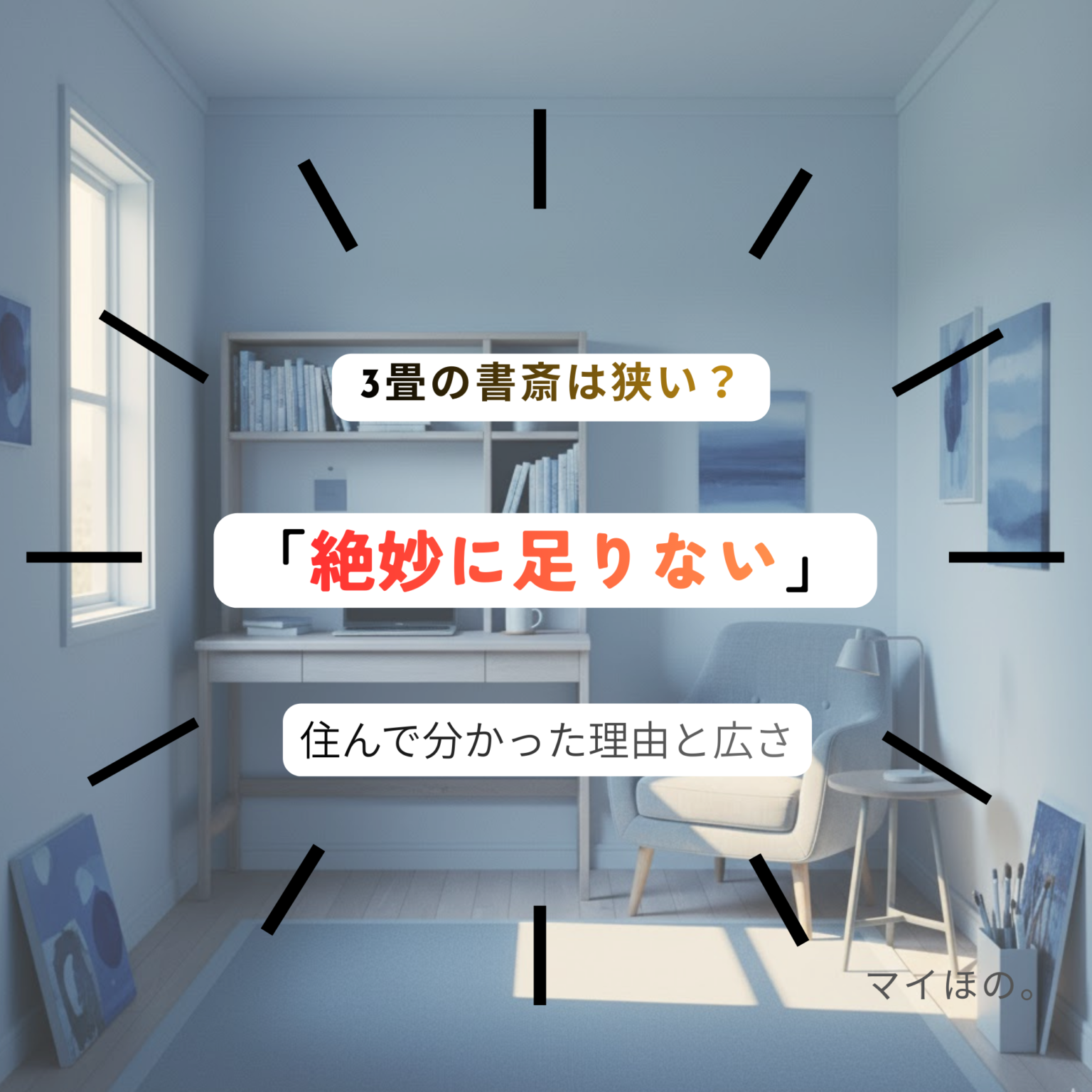 家づくりのときに「書斎は何畳くらい必要?」と悩む人も多いと思います。実際に3畳の書斎に住んでみて感じたリアルな広さを書いてみます。